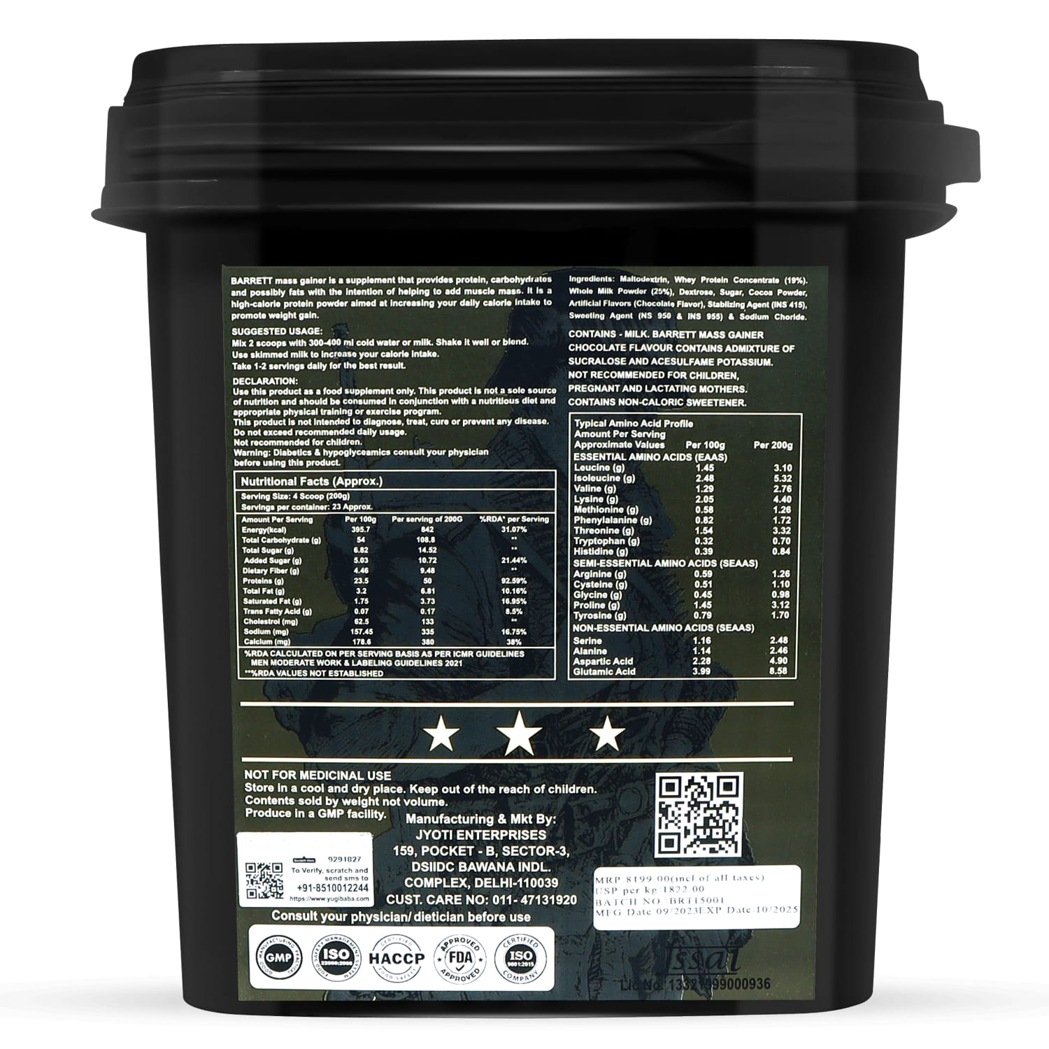 ✅ EXCELLENT PROTEIN FUEL FOR HIGHEST MUSCLE GAINS: Barrett Mass Gainer also contains 50g Protein with 9.5g BCAAs and 6gm Glutamine, which offer strong amino support for faster muscle growth and healthy gains. Furthermore, this potent protein profile strengthens your immune system and minimises breakdown during and after workout to give training results beyond expectations.
